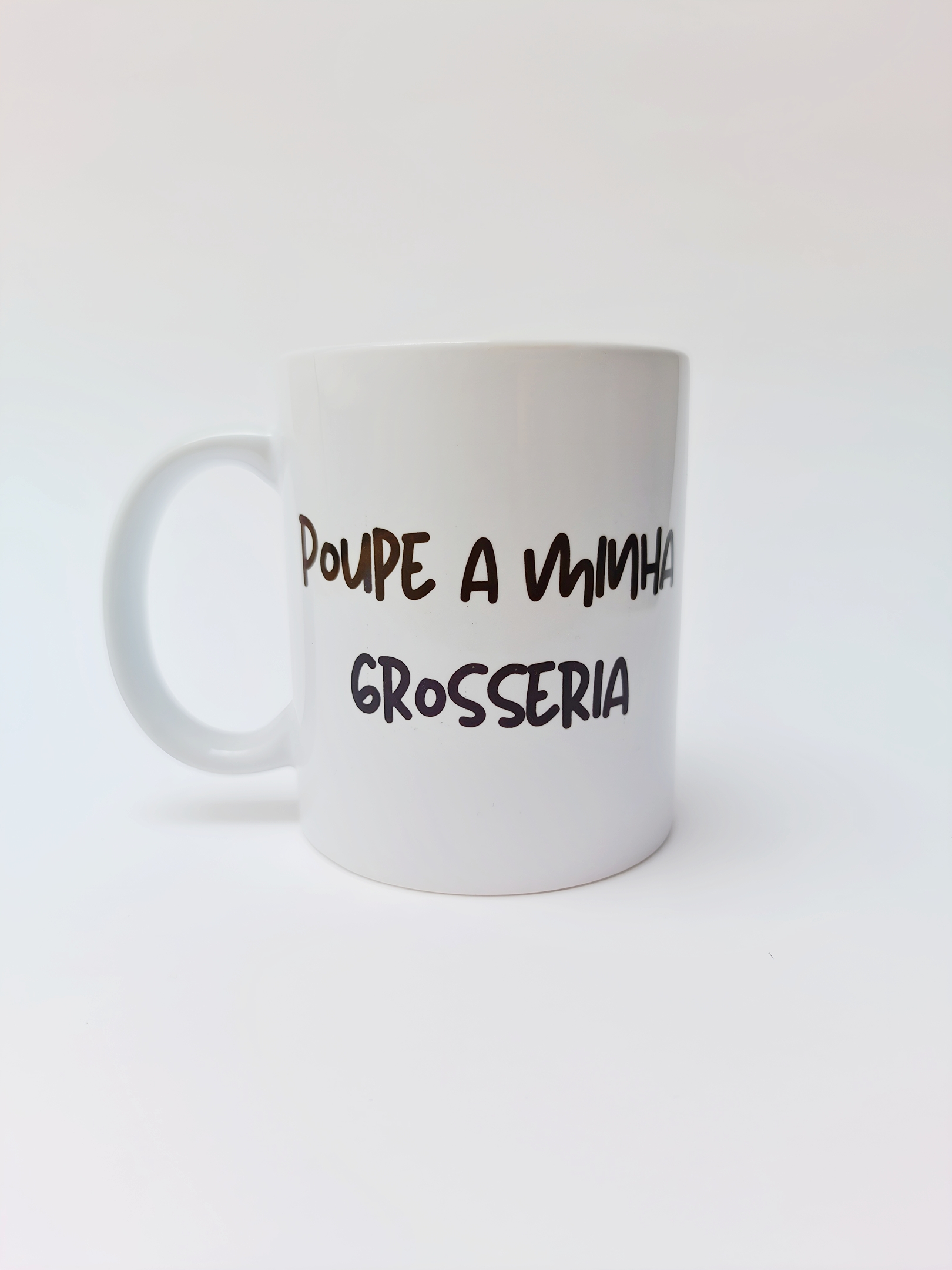 • Cor: Branco com frase em preto (para combinar com o seu humor)